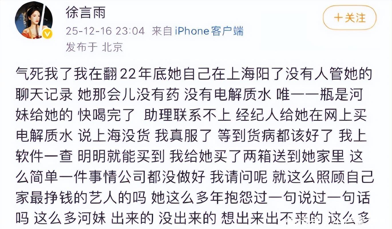 除此之外,鞠婧祎方还通过好友和代理律师发声,揭露公司存在不合理行为。比如工作中对她进行压榨,生病的时候没人照料,就连电解质水这种基础的关怀都没及时提供,想以此证明公司没履行好应尽的保障义务。