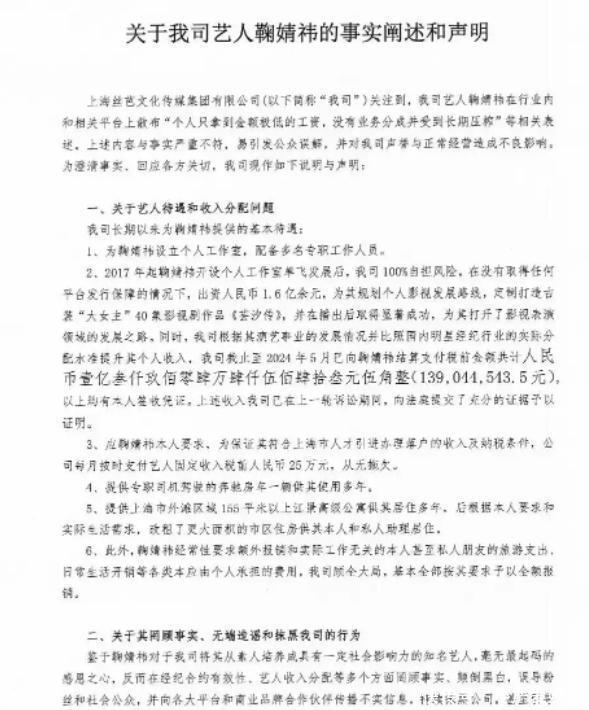 为了证明自己的说法,丝芭传媒主动公开了不少关键证据。他们先是晒出了详细的收入明细,说截月,公司已经给鞠婧祎结算𱄽.39亿元的税前收入,还附上了有她本人签字确认的签收凭证,想以此证明公司已经足额支付了劳动报酬。除了高额收入,丝芭传媒还披露了给鞠婧祎的优厚福利待遇。